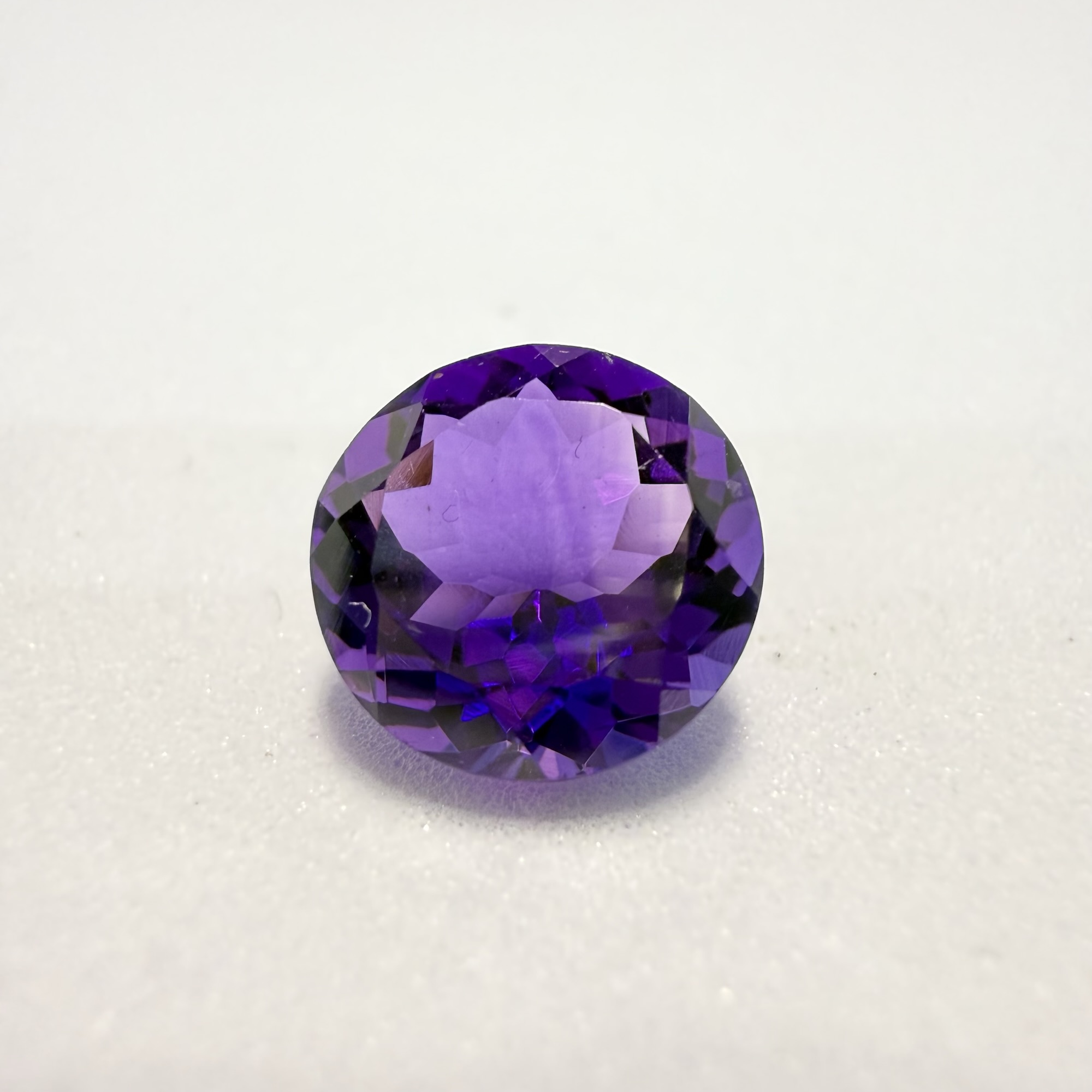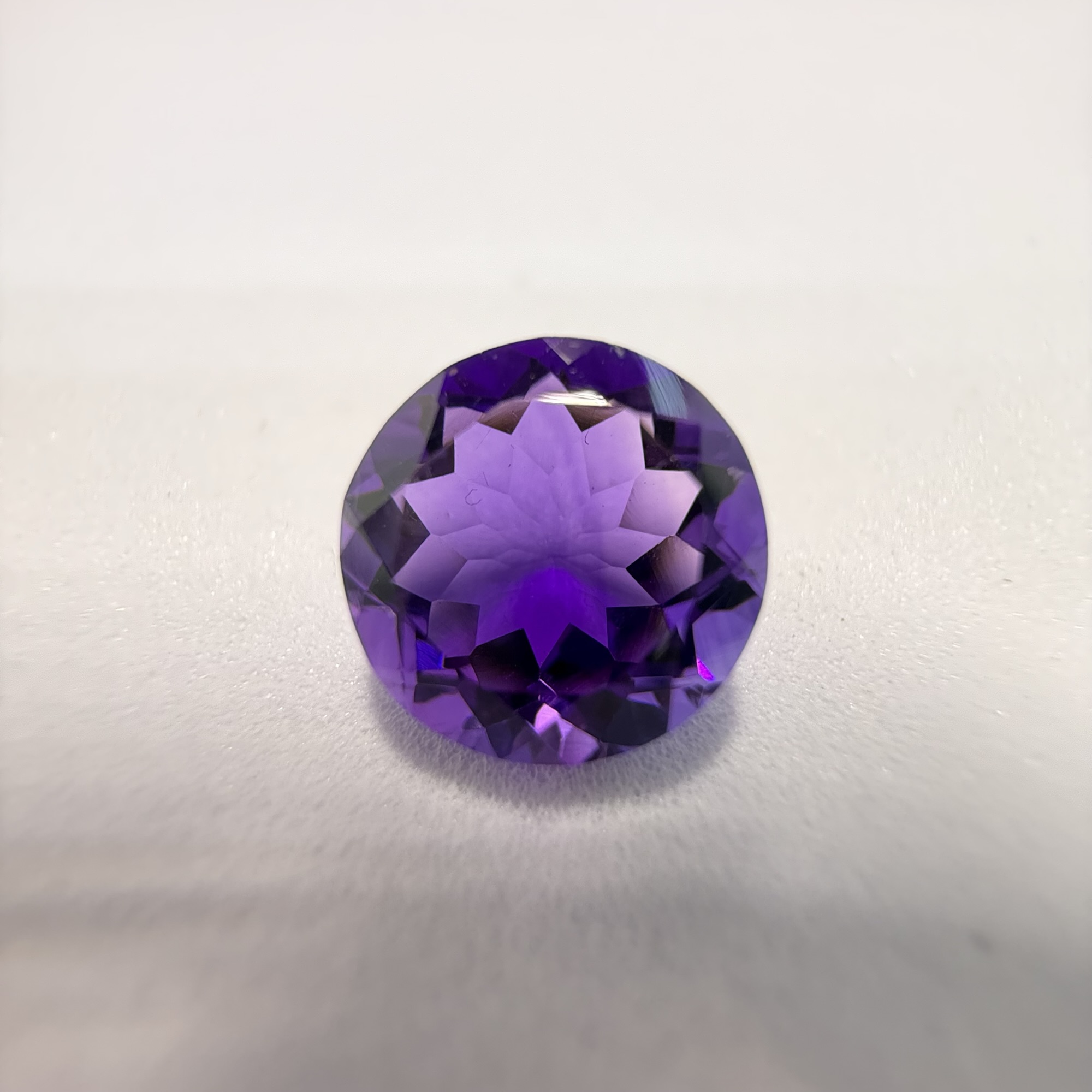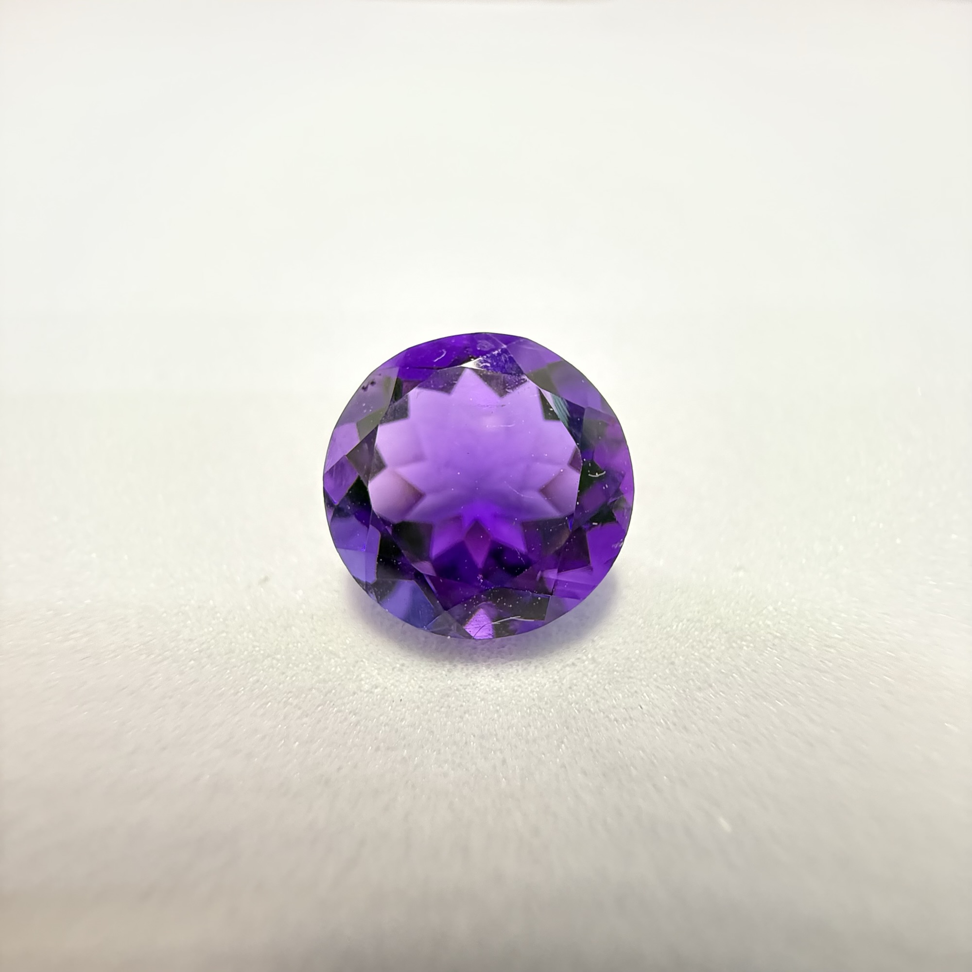 This alluring 3.45 carat round brilliant amethyst displays a captivating medium to deep purple hue, radiating royalty and sophistication. Its classic round brilliant cut is expertly faceted to maximize sparkle and fire, creating a dazzling play of light within the gem. This versatile and vibrant gemstone is an ideal choice for a striking ring or an elegant pendant, offering both timeless beauty and a regal presence.