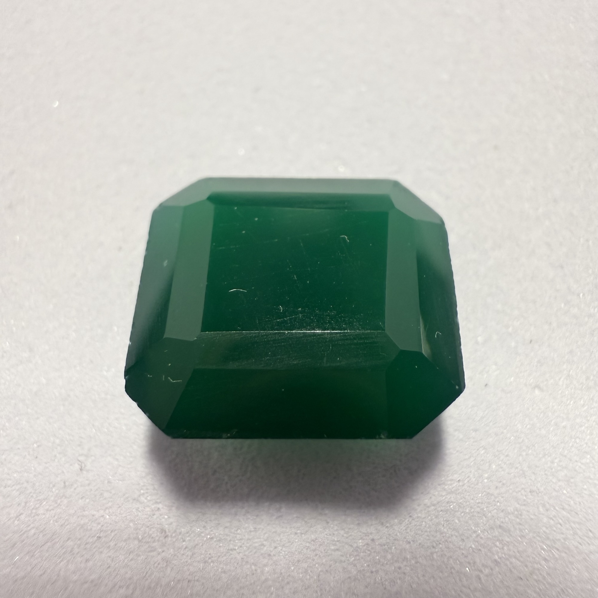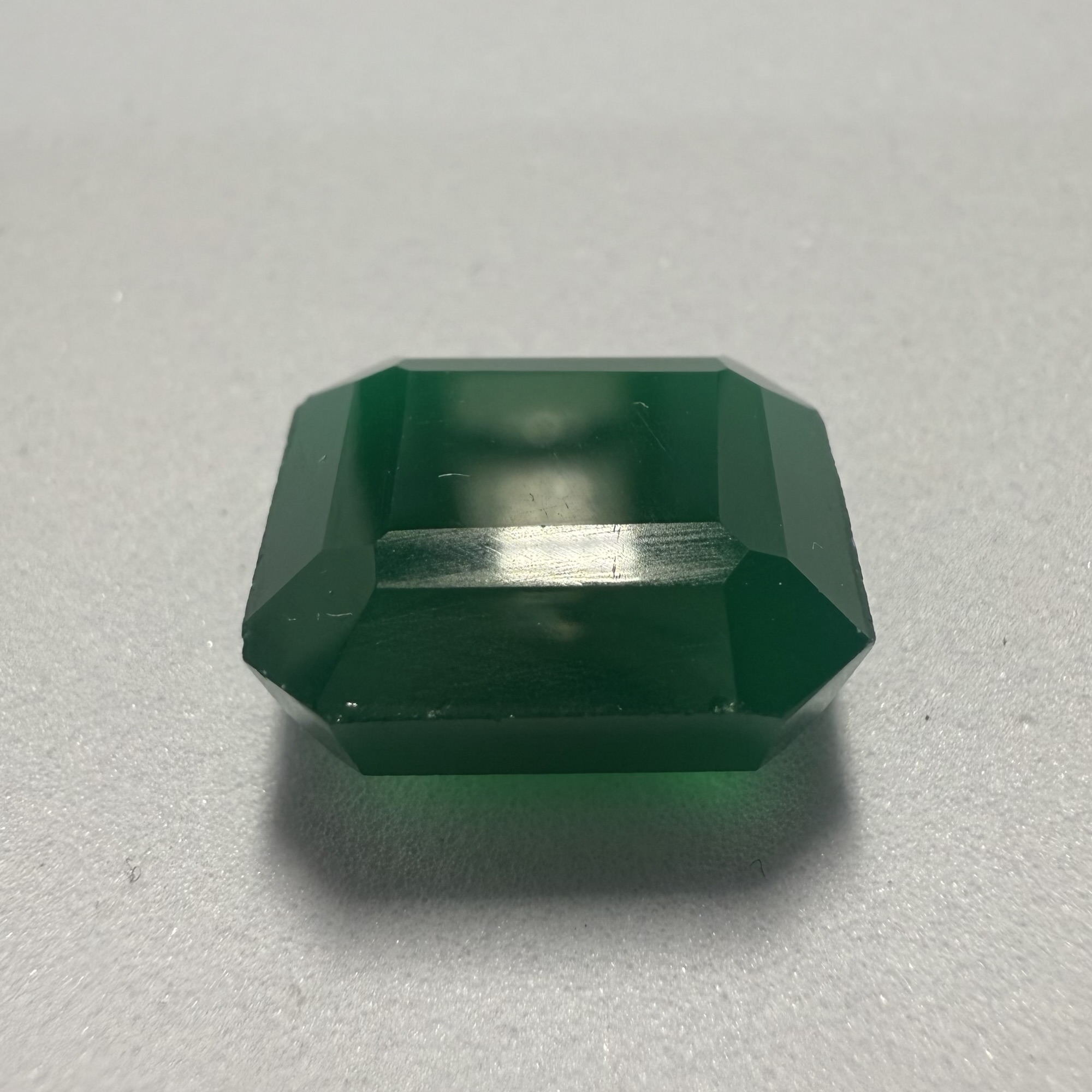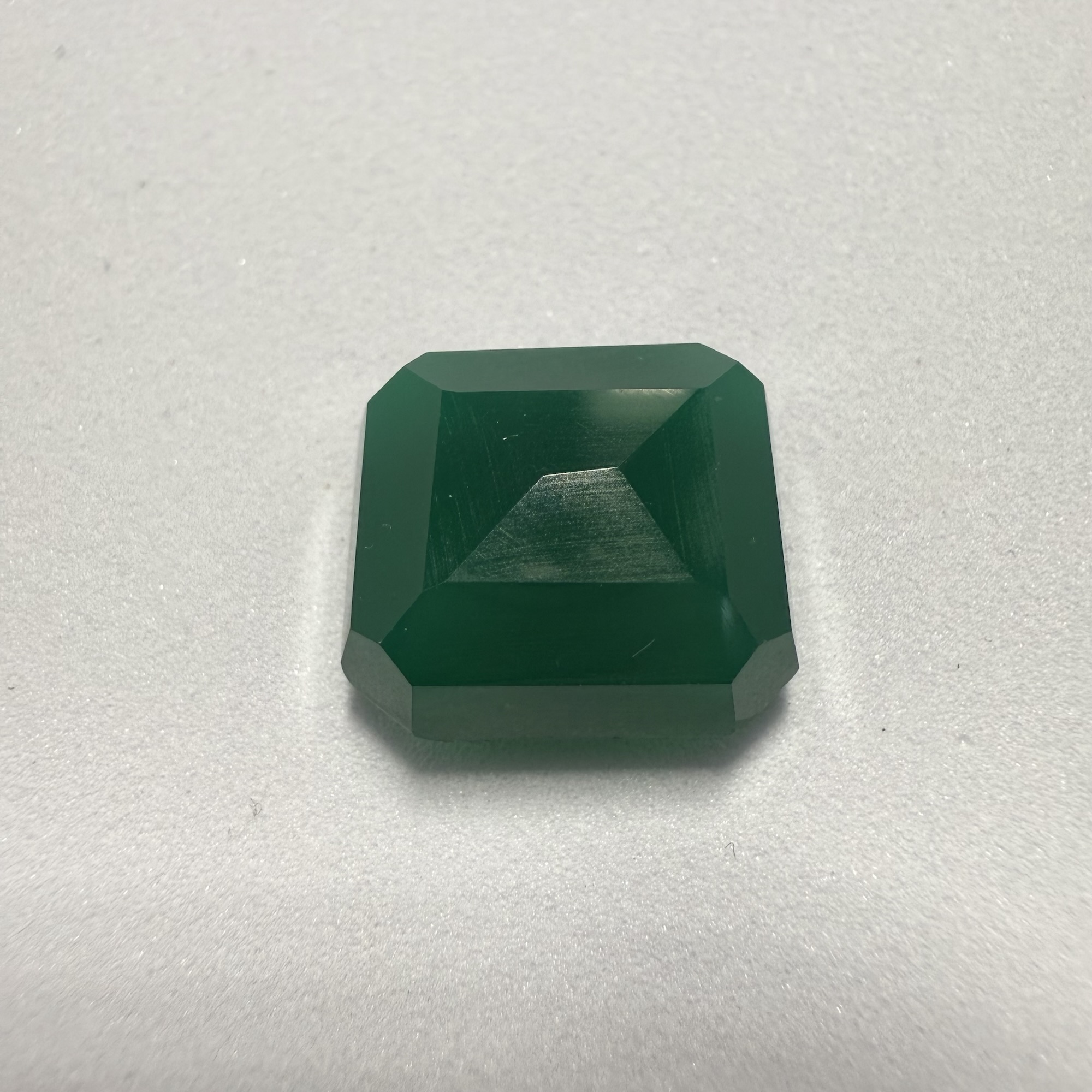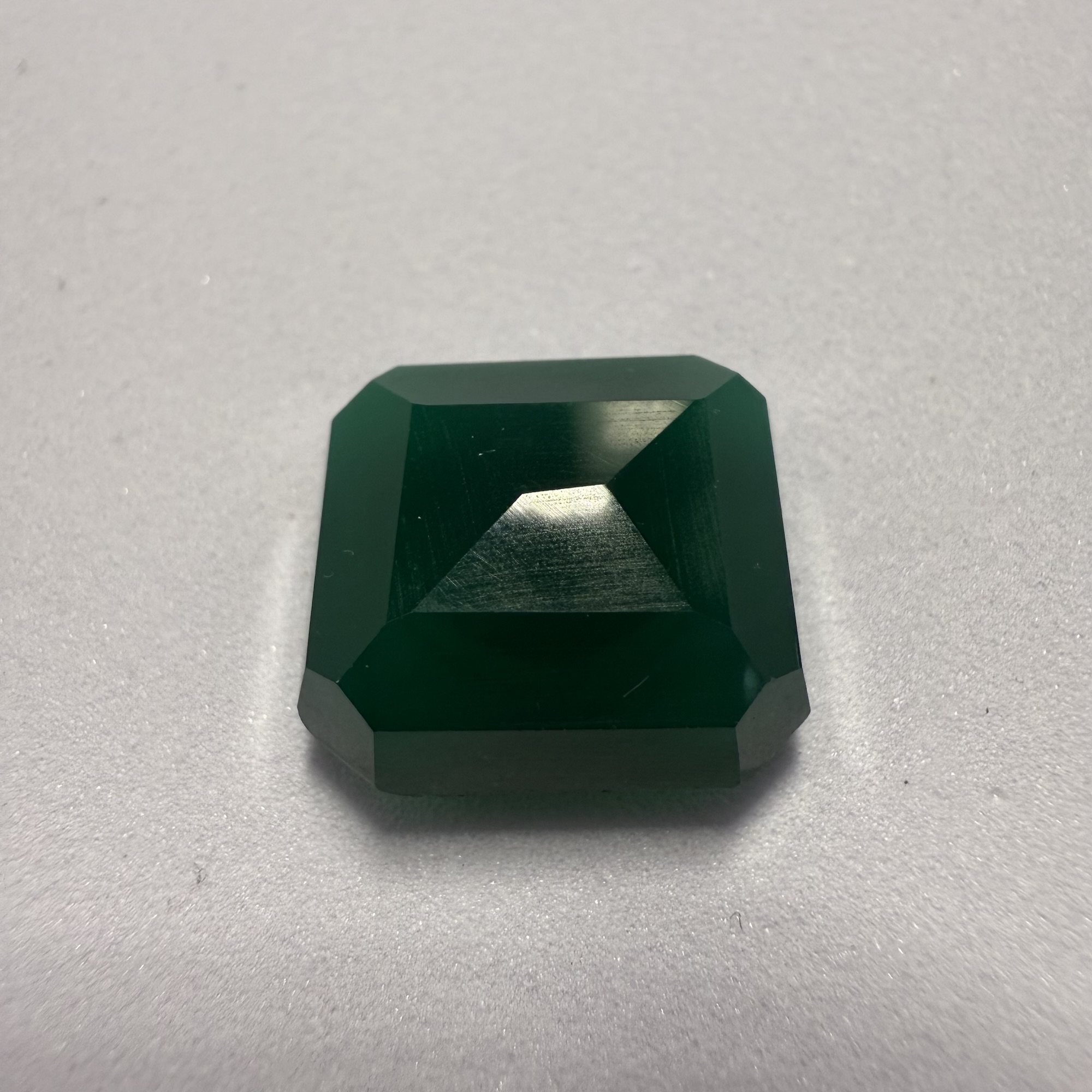 This impressive 12.15 carat Asscher-cut onyx presents a sleek, opaque black, radiating sophisticated elegance. Its precise step-cut facets and truncated corners create a mesmerizing “hall of mirrors” effect, reflecting light within its depths. The substantial size and bold, geometric form make it an exceptional choice for a powerful statement ring or a dramatic pendant, offering a modern yet timeless appeal with a unique architectural flair.