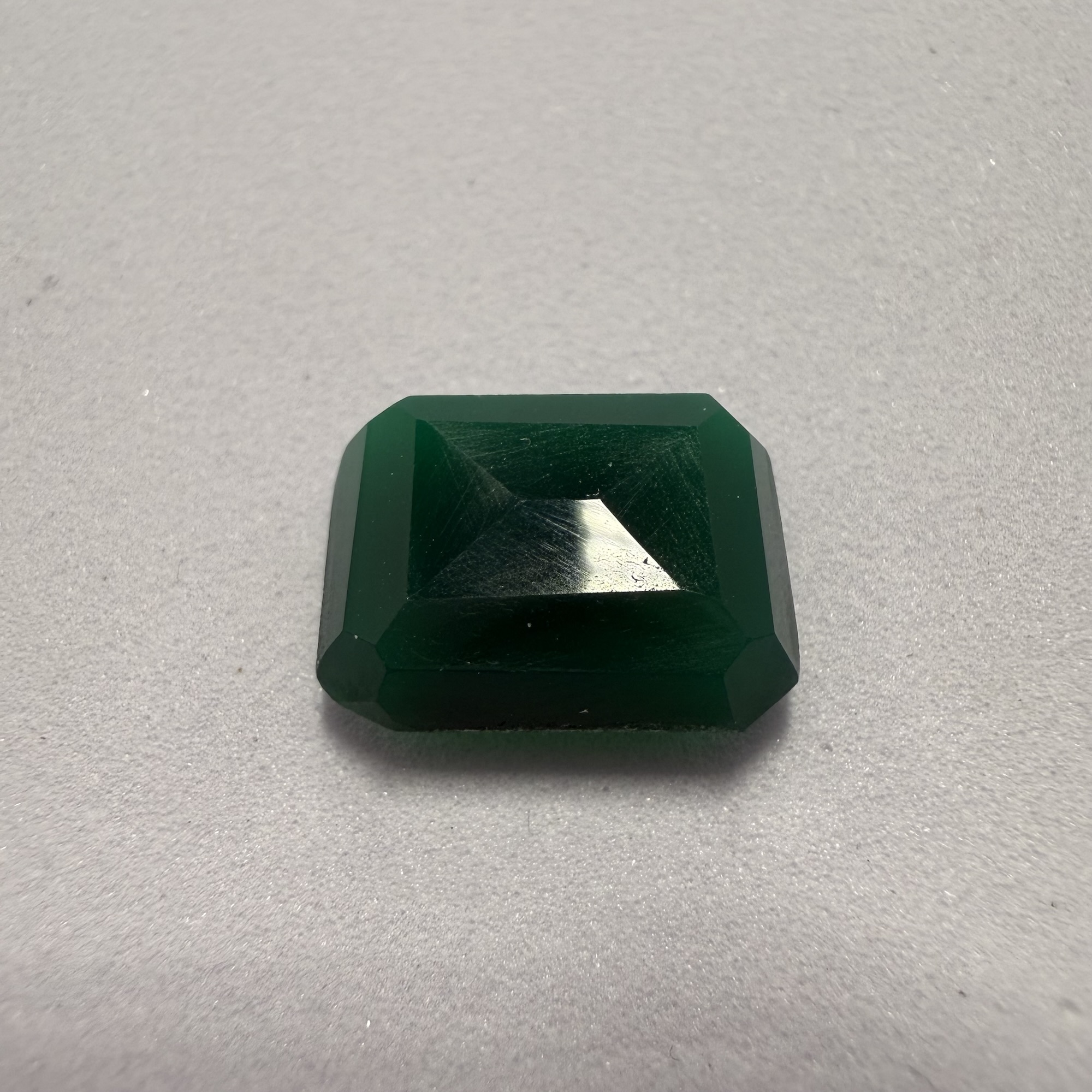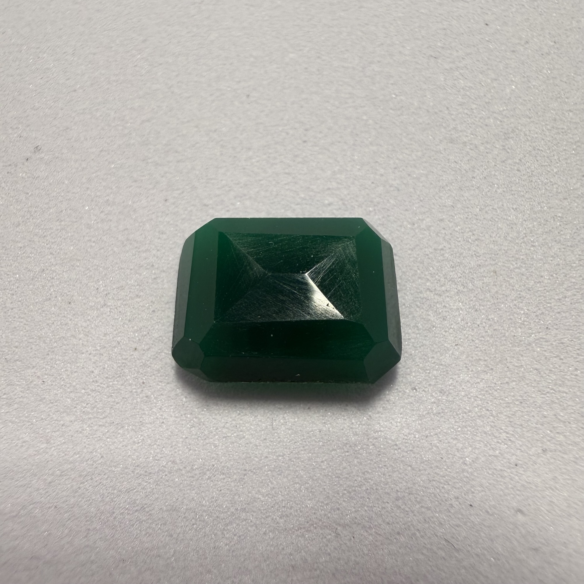 This sleek 5.85 carat Asscher-cut onyx presents a sophisticated, opaque black, offering a timeless and dramatic appeal. Its precise step-cut facets and signature clipped corners create a mesmerizing “hall of mirrors” effect, reflecting light with elegant geometric patterns. The substantial size and bold, architectural form make it an exceptional choice for a striking statement ring or a dramatic pendant, providing a modern yet classic aesthetic for any discerning individual.