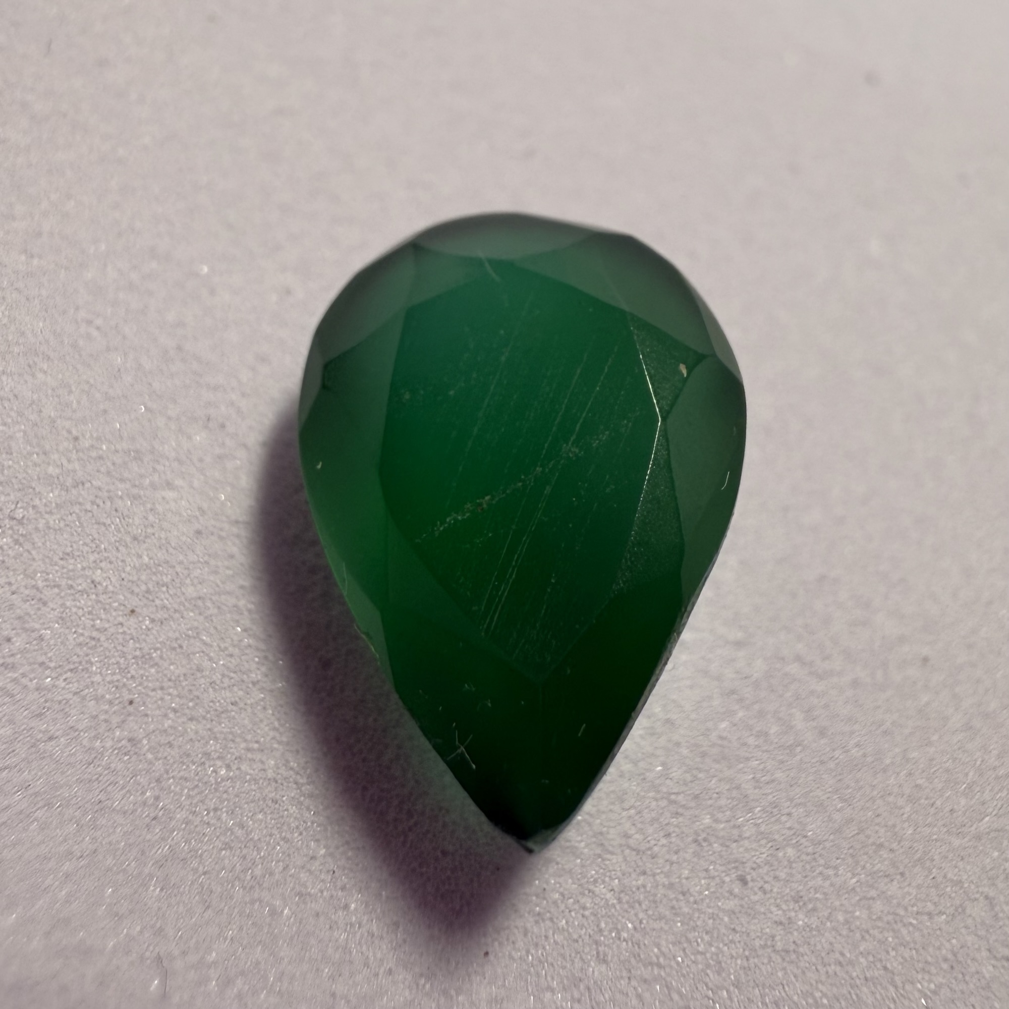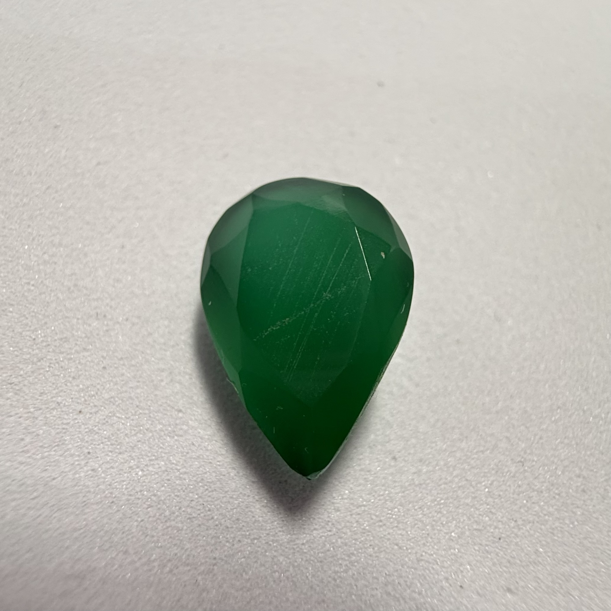 This sophisticated 8.20 carat tear-drop shaped onyx boasts a sleek, opaque black, offering a timeless and dramatic appeal. Typically cut as a smooth cabochon, its polished surface and graceful pear outline would beautifully catch and reflect light, emphasizing its deep, uniform color. The substantial size and elegant form make it an ideal choice for a striking pendant, drawing attention to the neckline, or a bold, contemporary ring, creating a chic and powerful statement.
