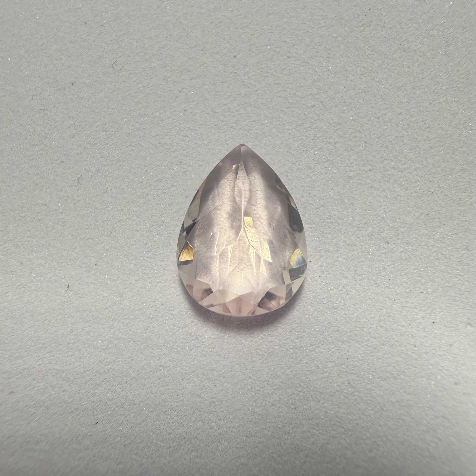 This delightful 4.30 carat tear-drop shaped rose quartz displays a delicate, translucent blush pink, embodying love and tenderness. Its elegant pear brilliant cut enhances its gentle glow, allowing light to softly illuminate its serene hue and graceful form. The versatile size and calming color make it an ideal choice for a charming ring or a comforting pendant, offering both subtle elegance and a heartfelt presence.